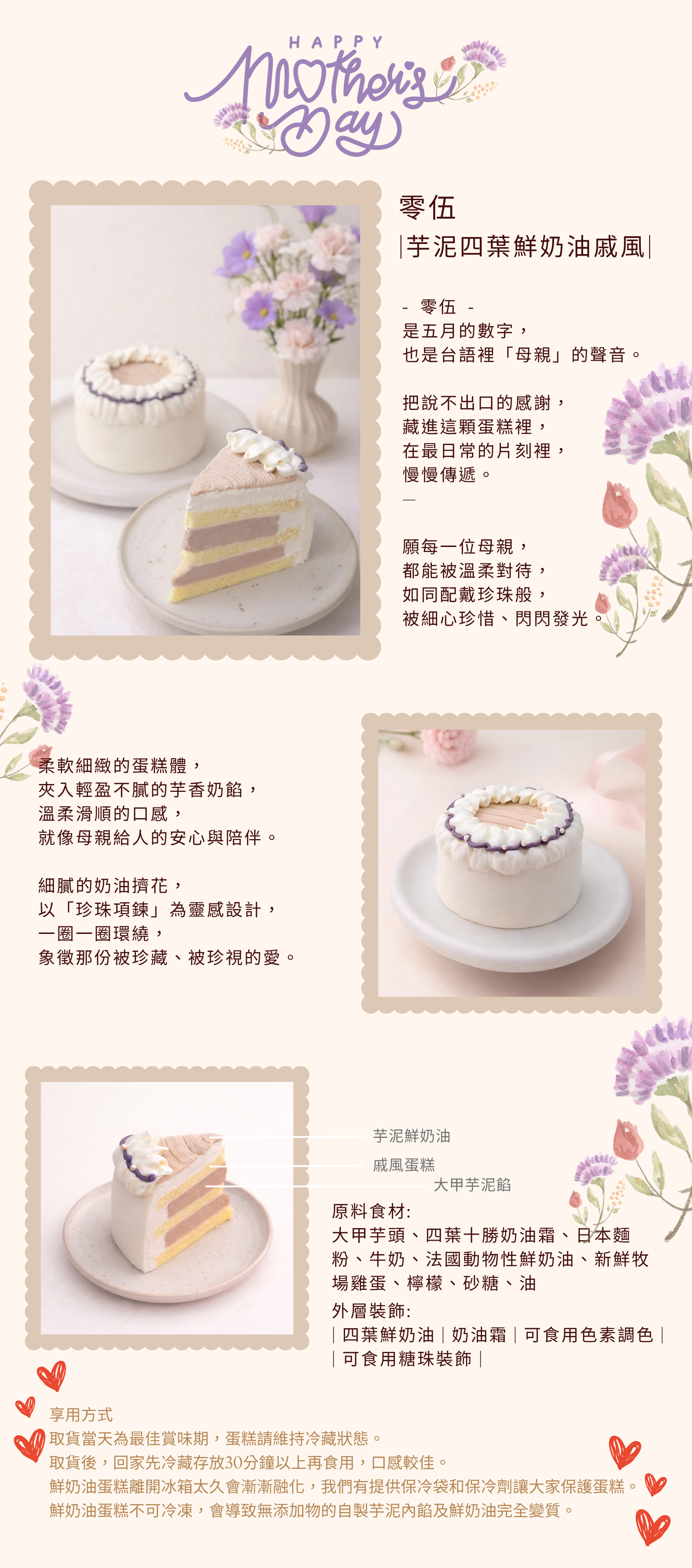 ❤︎無添加物的自製芋泥及鮮奶油對溫度較敏感,取貨後請於20-30分鐘內盡快放置冷藏