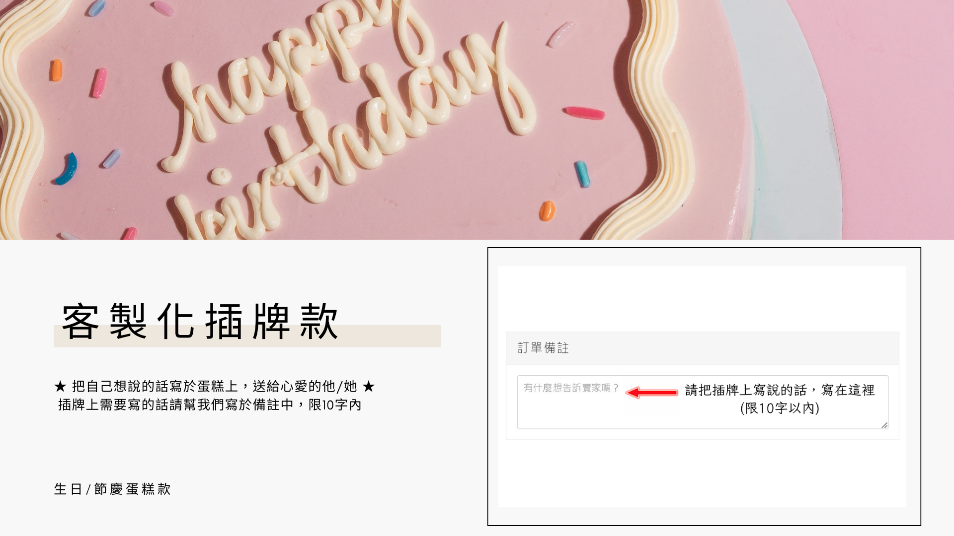 ・ 插牌上需要寫的話請幫我們寫於備註中,不限中英文,字數8字內